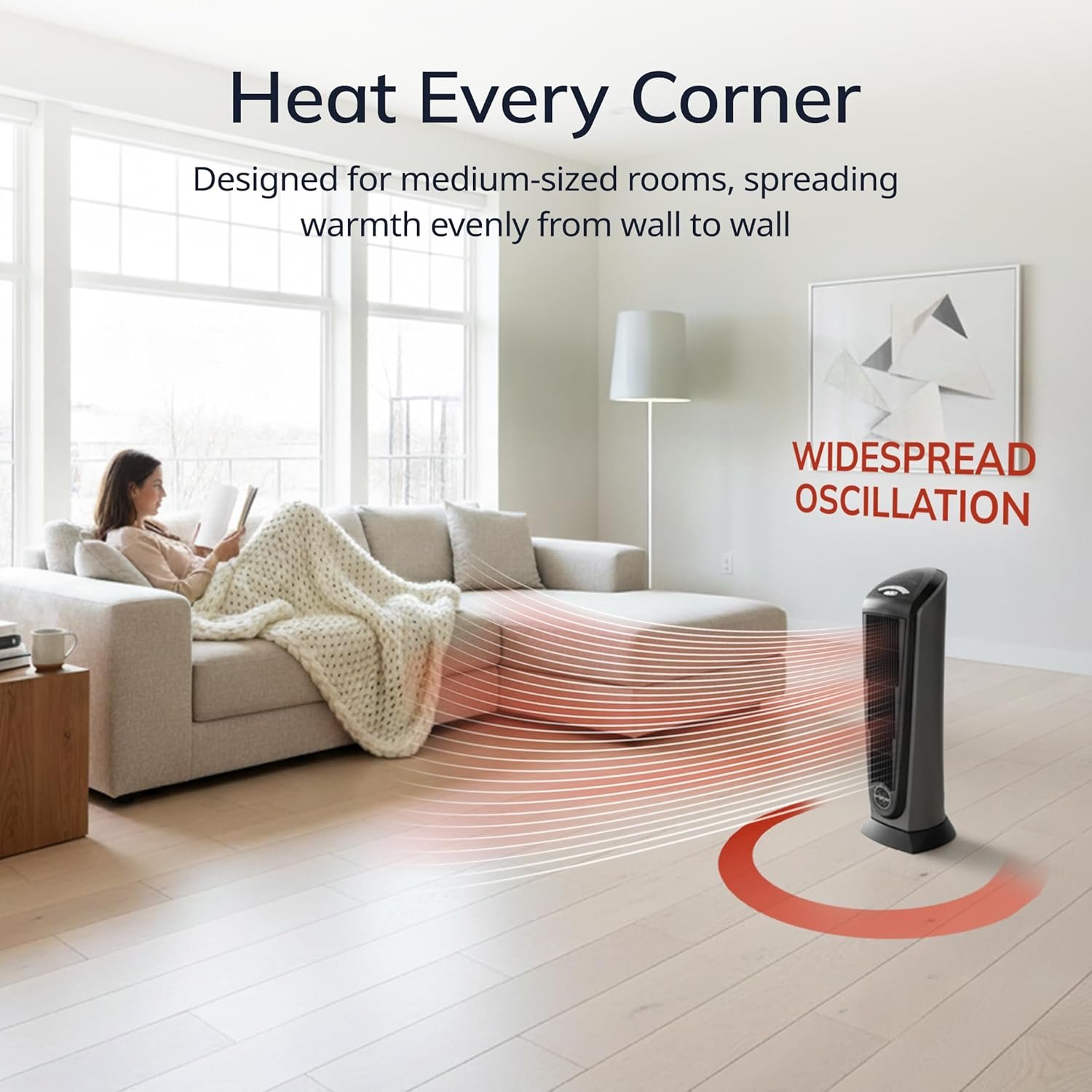 • Powerful Oscillating Heater: The 1500-watt element and widespread oscillation quickly fill small and medium rooms with even warmth—perfect as a bedroom heater or for your workspace.